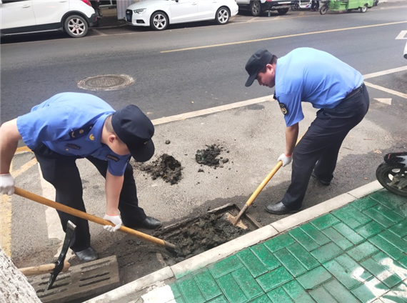 針對(duì)近期降雨增多,集鎮(zhèn)路面積水現(xiàn)象偶有發(fā)生,執(zhí)法大隊(duì)按照“防為重心、查為抓手、清為保障”的工作方式,安排人員加強(qiáng)對(duì)轄區(qū)內(nèi)靈順南路、靈順北路、虹南路、齊尚街等主要道路窨井蓋的排查清理力度,對(duì)窨井蓋、排水口內(nèi)雜物、淤泥進(jìn)行徹底清理,確保排水通暢,同時(shí)建立長效管理機(jī)制,重點(diǎn)做好轄區(qū)內(nèi)低洼地、易澇點(diǎn)的排水設(shè)施運(yùn)行、維護(hù)和管理工作,制定應(yīng)急措施,確保強(qiáng)降雨天氣街面無內(nèi)澇、無積水。
