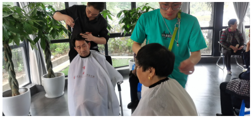 講座結(jié)束后,志愿者又為老年居民,和殘疾人士提供免費(fèi)理發(fā)。義剪現(xiàn)場(chǎng),理發(fā)師們妙手生花,按照每個(gè)人的要求修剪發(fā)型,看著修剪后的模樣,大家露出滿(mǎn)意的笑容,紛紛表示可以從頭開(kāi)始清涼一夏了,現(xiàn)場(chǎng)其樂(lè)融融,歡聲笑語(yǔ)連綿不絕。
