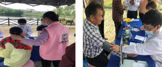 活動現(xiàn)場,老年人排隊有序的至登記處,志愿者悉心詢問老人們是否吃過早餐并填寫好個人信息表格,醫(yī)務(wù)人員詢問是否患有心臟病、高血壓、糖尿病、腦梗等隱患疾病,同時詳細記錄好個人信息,為其他醫(yī)務(wù)人員的工作提供便利。第二環(huán)節(jié)是測量血糖血壓,醫(yī)務(wù)人員根據(jù)上一環(huán)節(jié)的個人信息進行報號,老人們依次上前會診,整個步驟井然有序,醫(yī)務(wù)人員完善信息,轉(zhuǎn)至下一環(huán)節(jié)。