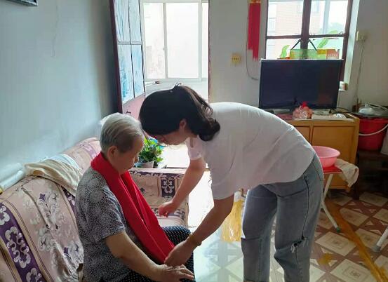大家和張奶奶一起吹唱生日快樂歌,為老人打掃家中衛(wèi)生,給老人戴上鮮艷的紅圍巾。喝著茶聊著天,伴隨著聲聲祝福的話語,張奶奶樂得合不攏嘴。現(xiàn)場,張奶奶也向我們分享著屬于她的幸福與快樂:“我的一生的幸福都是共產(chǎn)黨和國家給我的,給了我一個好時代,讓我可以擁有如此快樂的晚年生活。”