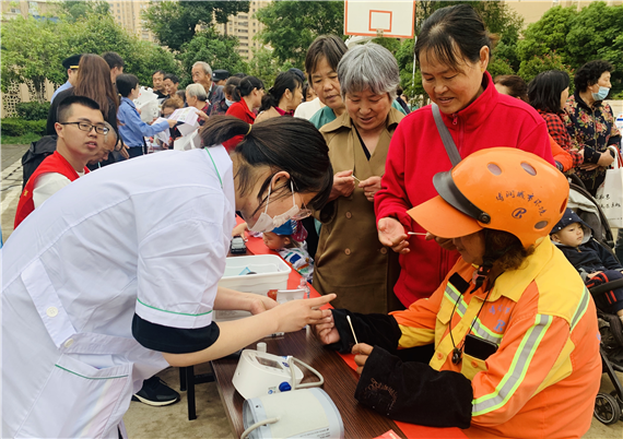 5月20日,南京市棲霞區(qū)馬群街道蛇盤社區(qū)新時(shí)代文明實(shí)踐站在玫瑰園籃球場(chǎng)組織開展“志愿服務(wù) 美好同行”便民廣場(chǎng)活動(dòng),提供血壓計(jì)檢定、眼鏡清洗、測(cè)量血壓血糖等免費(fèi)服務(wù),讓居民們?cè)谧约议T口享受貼心服務(wù)。