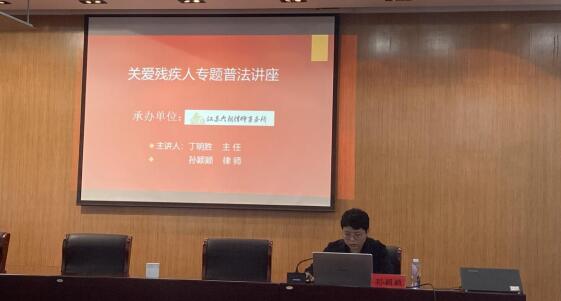 召開一次專題學習會?;顒犹貏e邀請江蘇六朝律師事務所的丁名勝主任和孫穎穎律師講解殘疾人保障法等涉及到殘疾人切身利益的法律法規(guī),更好地依法維護殘疾人權(quán)益,促進殘疾人事業(yè)發(fā)展。