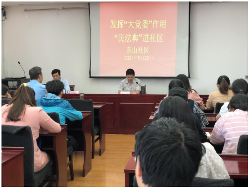 為充分發(fā)揮“大黨委”戰(zhàn)斗堡壘作用,引導(dǎo)社區(qū)居民群眾養(yǎng)成自覺守法的意識(shí),形成遇事找法的習(xí)慣,5月22日下午,南京市江寧區(qū)東山街道東山社區(qū)“大黨委”及成員單位江寧法院聯(lián)合舉辦了“民法典”進(jìn)社區(qū)宣講活動(dòng)。