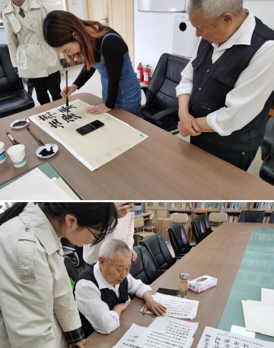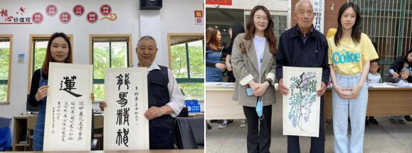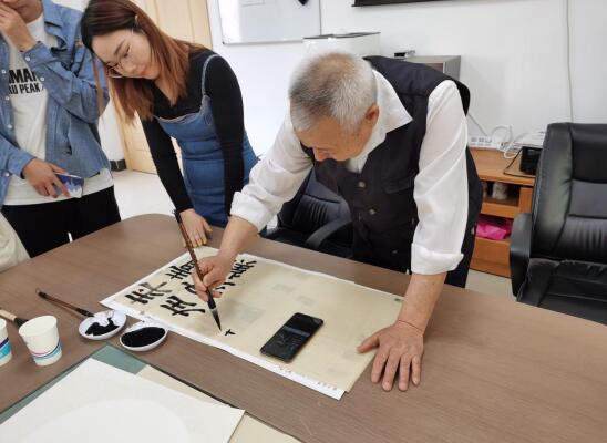 活動中,老黨員書法愛好者更是不由回憶起自己的青春歲月,現(xiàn)場分享了自己的入黨經(jīng)歷,重溫崢嶸歲月,在老黨員的講述中,學(xué)子們不禁能夠感受到他話語中自然而然流露出的對黨的熱愛。