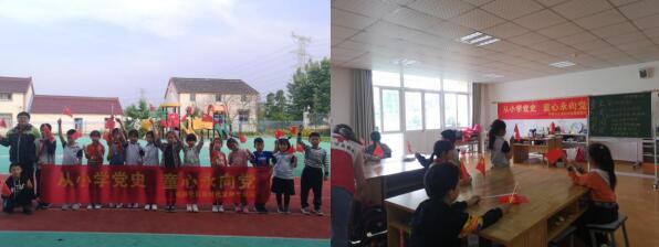 本次活動(dòng)共分為詩朗誦、唱紅歌、挑戰(zhàn)賽等三個(gè)板塊,多維度深入開展黨史學(xué)習(xí)教育。孩子們興奮地?fù)]舞著手中的黨旗,在老師的帶領(lǐng)下朗讀《黨的詩歌》,朗朗書聲,代表著希望與未來,孩子們用稚嫩的童音表達(dá)了對黨最真摯的愛與祝福。一陣悅耳的旋律傳來,孩子們跟老師齊唱紅歌《唱支山歌給黨聽》。在歌聲中,點(diǎn)燃孩子們的愛國愛黨情懷,也點(diǎn)燃他們心中為理想奮斗不息的火焰。來到室外,孩子們進(jìn)行了“童心向黨、同足向前”挑戰(zhàn)賽,大家一起手牽手,肩并肩,共同迎接困難和挑戰(zhàn)。