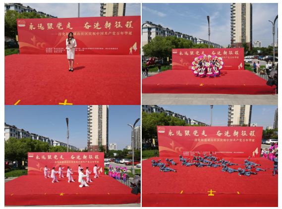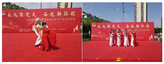 以一曲《歌唱祖國》拉開了整場文藝匯演的序幕,合唱《沒有共產(chǎn)黨就沒有新中國》、旗袍秀《花開中國》、扇子舞《幸福中國一起走》等節(jié)目,迅速將現(xiàn)場氣氛點燃,博得場下居民陣陣喝彩?;顒蝇F(xiàn)場熱鬧非凡,喝彩不斷。黨史知識競答、學黨史強信念文化長廊、繽紛多彩的文藝演出……豐富多樣的表演形式讓在場的居民大呼過癮,精彩紛呈的節(jié)目一個接著一個,讓整個活動現(xiàn)場洋溢著歡樂的氣氛。演員們精湛的表演,專業(yè)的水準,使得演出活動高潮迭起、掌聲不斷。演出最終在大合唱《中國少年先鋒隊隊歌》《聽我說謝謝你》的嘹亮歌聲中,圓滿落下帷幕。