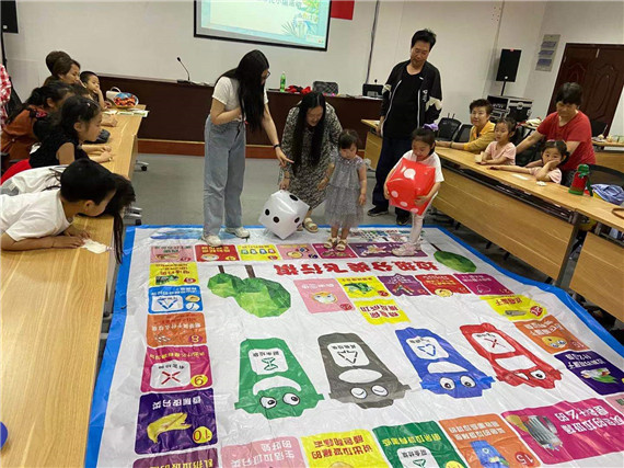 活動(dòng)中,社區(qū)工作人員先向參與活動(dòng)的家庭發(fā)放垃圾分類宣傳手冊(cè)進(jìn)行宣傳。同時(shí),社區(qū)志愿者們還設(shè)置了妙趣橫生的趣味游戲和多種形式的互動(dòng)環(huán)節(jié),在游戲的過程中向居民普及垃圾分類知識(shí),為大人和孩子上了一堂生動(dòng)的垃圾分類知識(shí)課。