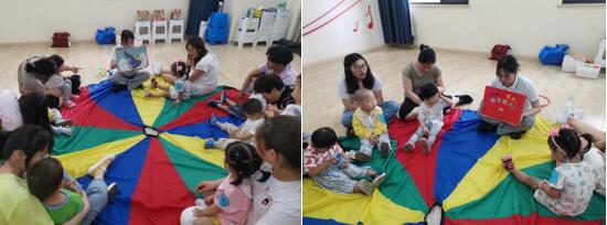 隨后,老師們帶領(lǐng)小朋友們做律動(dòng)操《小動(dòng)物做早操》,憨態(tài)可掬的動(dòng)作,瞬間萌翻了一眾家長(zhǎng)的心,讓陪同的家長(zhǎng)們?nèi)炭〔唤?。待小朋友們熟悉環(huán)境后,老師又帶領(lǐng)家長(zhǎng)和小朋友們一起參與進(jìn)來(lái),從做游戲《小雞捉蟲(chóng)》、《聽(tīng)聲辨位》、《親子投球》,到學(xué)兒歌《夏天》,精彩的互動(dòng),讓孩子們樂(lè)在其中。尤其是繪本故事《長(zhǎng)大長(zhǎng)大,老師一邊讀故事一邊生動(dòng)的表演著一邊和孩子們互動(dòng),引起家長(zhǎng)朋友的一致好評(píng),紛紛表示要向老師學(xué)習(xí)如何將繪本故事講得如此生動(dòng)。