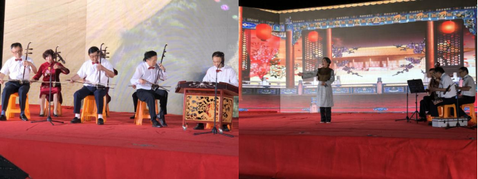 民樂合奏《洪湖水浪打浪》《瀏陽河》、女聲獨唱《毛主席話兒記心上》、舞蹈《花鼓聲聲慶百年》、群口快板《社區(qū)防控疫情》......演員們用嘹亮的歌聲、優(yōu)美的舞姿、輕快的打板,展示了江寧人民的良好精神風貌和村委會防疫的艱辛與不易,引導黨員群眾厚植愛黨、愛國、愛社會主義的偉大情懷,爭做朝氣蓬勃、積極向上、文明和諧新時代好村民。