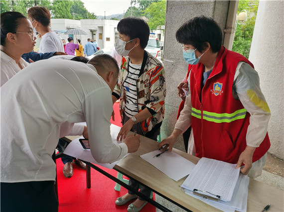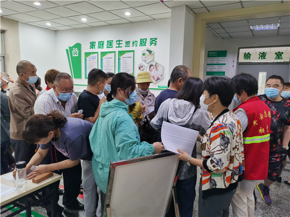 “大家不要著急,請有序排好隊。”“請接種疫苗的人,在這里領(lǐng)取健康填寫申報表,寫好后交給我們的工作人員。”6月3日下午,南京市棲霞區(qū)棲霞街道攝山村兩委班子成員在棲霞社區(qū)衛(wèi)生服務(wù)中心新冠疫苗接種點現(xiàn)場,靠前做好服務(wù)保障,引導群眾有序進行疫苗接種。