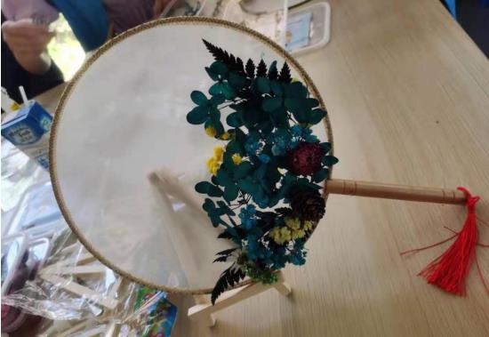 活動中,手工老師首先向大家介紹了團扇的發(fā)展歷史,講解團扇的制作方法。在場的殘疾人們認真聆聽,及時將團扇的制作步驟記錄下來。對于講解中存在疑惑的地方及時舉手詢問,現(xiàn)場的手工老師耐心解答,確保所有人對于團扇的制作流程有了基本的概念后,手工老師帶領(lǐng)殘疾人進行團扇的手工制作。在老師細心指導(dǎo)下,細細構(gòu)圖,幾片葉子,數(shù)朵干花,細心粘貼,經(jīng)過一個多小時的努力,干花、綠葉在團扇上展現(xiàn)出它們獨特的風(fēng)采,原本空空如也的團扇瞬間花團錦簇,漂亮極了。團扇的順利制作給了殘疾人們莫大的信心,他們對于自己的再就業(yè)道路充滿了希望。