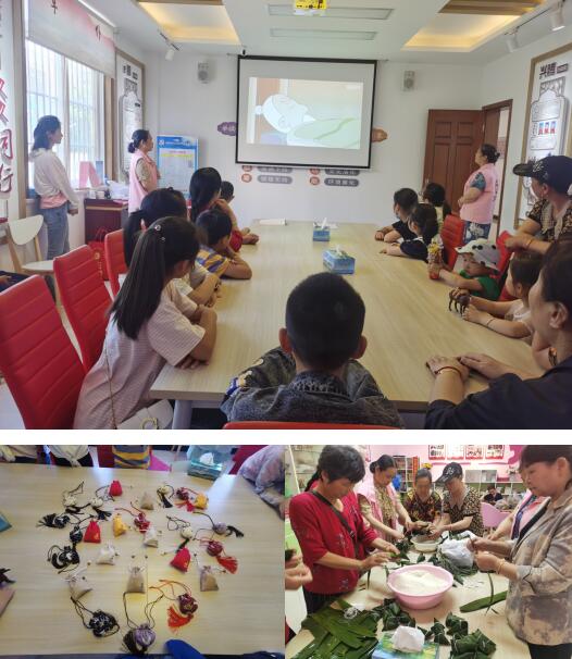 活動伊始,志愿者通過視頻講解向親子家庭傳授端午節(jié)的由來,加深他們對中國傳統(tǒng)節(jié)日文化的了解。親子家庭的大人和小孩們聽說今天可以將自己包的粽子做的香囊送去看望小區(qū)獨(dú)居老人,每個人都興奮、認(rèn)真地沉浸在包粽子做香囊的“競賽”中,在大家通過近30分鐘的努力下,粽子、香囊成品都已完成。