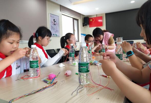 近日,南京市棲霞區(qū)燕子磯街道電瓷社區(qū)便民服務(wù)中心關(guān)工委端午節(jié)教同學(xué)們編七彩鴨蛋繩。