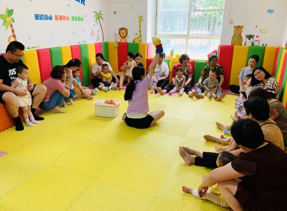 活動(dòng)現(xiàn)場(chǎng),來(lái)自社區(qū)的居民家庭參加活動(dòng),此次活動(dòng)名稱是中教課程《快樂(lè)老虎堂》,首先是老師教導(dǎo)孩子們唱問(wèn)好歌《one by one say hello》,老師帶頭下,孩子們跟著老師慢慢吟唱,曲調(diào)生動(dòng)有趣且十分認(rèn)真。之后,伴隨著音樂(lè)《Good Morning》,師生互相用英語(yǔ)問(wèn)好。隨后是課程時(shí)間,學(xué)習(xí)單詞tiger、fish,互相扮演老虎與魚(yú)兒打招呼,讓師生互動(dòng)更加深入有趣,也加強(qiáng)孩子們的交際與語(yǔ)言能力。