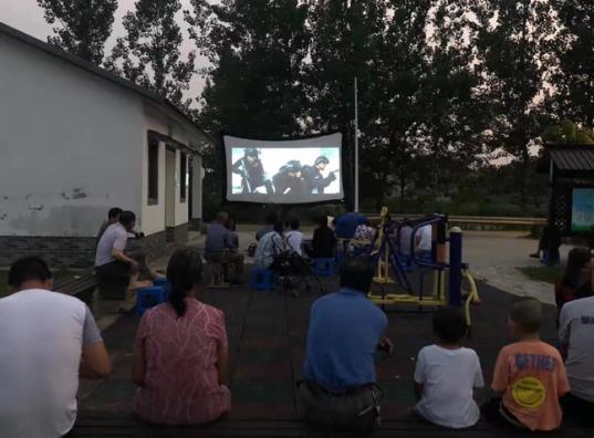 6月11日晚,南京市江寧區(qū)江寧街道西寧村在張莊村播放紅色電影-紅海行動。