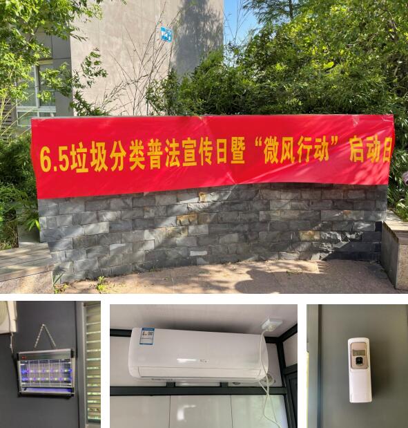 為民服務(wù),改善分類箱房環(huán)境。在“65世界環(huán)境日”當(dāng)天,江寧街道垃圾分類“微風(fēng)行動(dòng)”正式啟動(dòng)。針對(duì)垃圾分類箱房異味重、指導(dǎo)員夏季值守氣溫較高、小區(qū)分類氛圍不濃等現(xiàn)狀,街道垃分辦統(tǒng)籌考慮,以此次“微風(fēng)行動(dòng)”為契機(jī),對(duì)麒麟園小區(qū)箱房進(jìn)行一次“微改造”。通過管理間加裝空調(diào)、滅菌燈、香氛噴霧等措施,進(jìn)一步改善箱房?jī)?nèi)部環(huán)境,此舉不僅為值守在內(nèi)的指導(dǎo)員提供“清新與清涼”,也得到小區(qū)居民的認(rèn)可和支持。