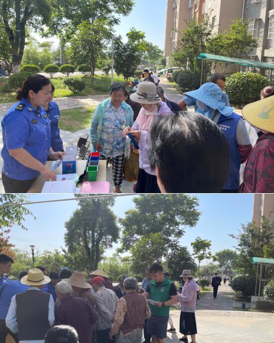宣傳先行,城管普法垃圾分類。為營(yíng)造出活動(dòng)現(xiàn)場(chǎng)濃厚的宣傳氛圍,街道城管執(zhí)法輔助人員主動(dòng)向小區(qū)居民講解、普及《南京市生活垃圾管理?xiàng)l例》,詳細(xì)解讀有關(guān)規(guī)定內(nèi)容,并現(xiàn)場(chǎng)一一解答居民的疑問,消除他們的顧慮。與此同時(shí),垃分辦組織志愿者為在場(chǎng)的居民發(fā)放一封信、宣傳冊(cè),分享垃圾分類知識(shí)和分類方法,通過模擬分類投放小游戲的形式,讓居民直觀地了解并清楚分辨四類生活垃圾,進(jìn)而深刻認(rèn)識(shí)到分類工作的必要性和長(zhǎng)遠(yuǎn)意義。