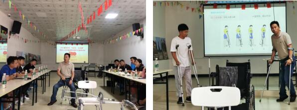 本次培訓由街道殘聯(lián)專職委員張家旺進行授課,主要從康復輔助器具適配基本知識以及現(xiàn)行康復政策兩大方面進行深入示范和講解,暨如何辨別不同類別的殘疾人使用不同康復輔助器具進行科學的適配需求,和康復輔具的正確安裝及操作使用方法,并現(xiàn)場進行示范操作。授課老師針對如何正確使用四腳拐杖、框式助行器、腋拐等等常用輔具,以及他們的一些特殊用途都一一進行了詳細解讀,社區(qū)工作人員也一一上臺進行實際操作,從殘疾人自身角色互換體驗出發(fā),切實感受殘疾人的困難、和面臨的適配需求,從而為轄區(qū)內(nèi)殘疾人提供更加安全、高效的輔具適配服務。