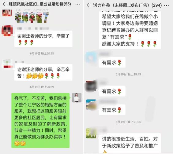 通過新政策的在線解讀,讓有婚姻登記需求的居民對該政策有了詳細(xì)的了解,并也發(fā)動大家向身邊的朋友多多宣傳,讓有需求的居民享受到國家的政策。