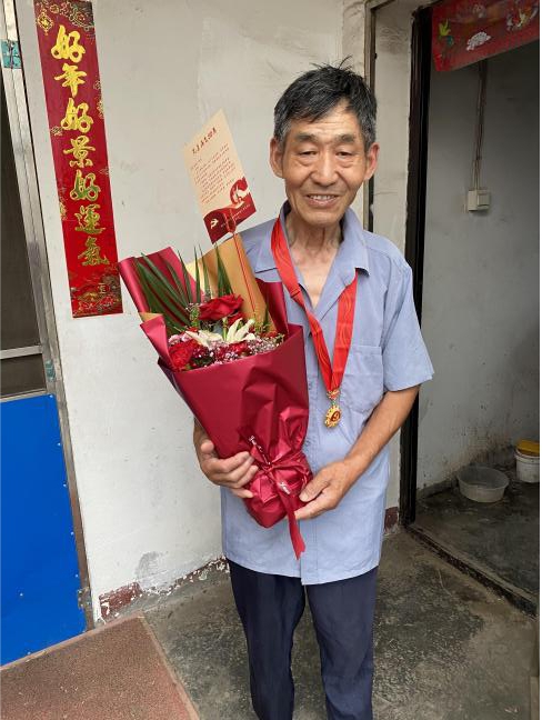 為慶祝中國共產(chǎn)黨成立100周年,厚植知黨史、聽黨話、跟黨走的愛黨愛國情懷,2021年6月26日,江寧區(qū)湖熟街道晶明村組織開展了“老兵永遠(yuǎn)跟黨走”的走訪活動,為退役軍人老黨員送上“光榮在黨50年”紀(jì)念章。