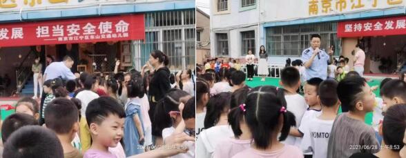 6月28日,在江寧區(qū)東山街道中前社區(qū)的東山交通幼兒園在國(guó)旗下講話來了一位神秘的客人,他挺拔的身姿,洪亮的聲音喚醒了我們內(nèi)心的安全意識(shí),原來他就是我們的法治副校長(zhǎng)吳警官。