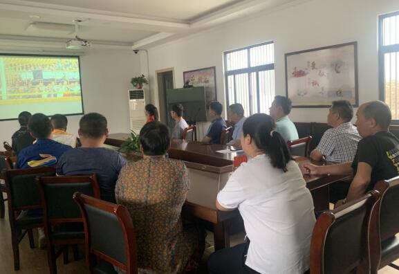 黨員們對“七一”的到來期盼已久,一大早,村子禮堂內(nèi)就坐滿了衣著整潔的黨員們。上午8時左右,中國人民解放軍71架戰(zhàn)機如雄鷹振翅般越過天安門廣場,昭示著中國的力量,國旗護衛(wèi)隊官兵伴著響徹云霄的禮炮聲,莊嚴護衛(wèi)五星紅旗。鮮艷奪目的旗幟下,萬民齊唱中華人民共和國國歌,這一幕深深鐫刻進了每一位黨員的心中,成為建設(shè)紅色力量的不竭源泉。