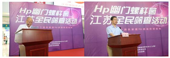 現(xiàn)場,還進行了授牌儀式,部分基層醫(yī)療機構(gòu)被授予“江蘇省基層醫(yī)療衛(wèi)生機構(gòu)消化特色科室孵化基地”銅牌。授牌儀式結(jié)束之后,所有領(lǐng)導(dǎo)嘉賓同時按動了啟動鍵,HP幽門螺桿菌江蘇全民篩查活動正式啟動。