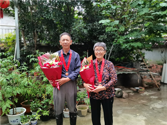 在湖熟街道楊柳湖社區(qū)“光榮在黨50年”紀(jì)念章發(fā)放儀式上,有這樣兩對老黨員夫妻格外引人注目。他們彼此手拉著手,互相為對方佩戴上象征著黨員光榮形象的紀(jì)念章……這是一份榮譽,也是一份見證和褒獎。