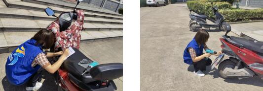 活動(dòng)現(xiàn)場(chǎng),面對(duì)前來咨詢、辦理電動(dòng)車上牌的村民,網(wǎng)格員細(xì)致周到的為大家提供服務(wù),有條不紊的登記著基本信息、簽署電動(dòng)自行車臨時(shí)信息牌承諾書。同時(shí),網(wǎng)格員也向村民們宣傳了相關(guān)交通安全知識(shí),倡導(dǎo)騎車要戴好安全帽,靠邊行駛,不與機(jī)動(dòng)車搶道,遵守道路交通法律法規(guī)等。室外,網(wǎng)格員們不懼烈日酷暑,用飽滿的熱情拿起手中的電鉆為電動(dòng)車上牌。不一會(huì)功夫,就順利辦好了30余輛。