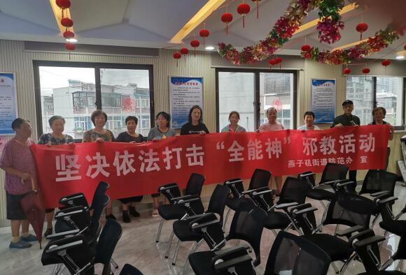 為進(jìn)一步增強廣大群眾識別、防范和抵御邪教的能力,營造和諧穩(wěn)定的社會環(huán)境,近日,南京市棲霞區(qū)燕子磯街道電瓷社區(qū)便民服務(wù)中心開展了堅決打擊“全能神”邪教活動。