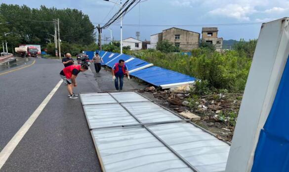 近日,南京市棲霞區(qū)棲霞街道東陽(yáng)社區(qū)接到居民王阿姨電話稱崗龍路沿線由于大風(fēng)、大雨天氣,有3處圍擋出現(xiàn)倒伏,部分圍擋破損,嚴(yán)重影響過(guò)往行人出行安全,希望引起大家的重視。