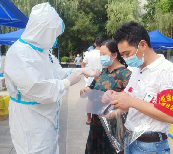 穿上防護(hù)服,敲門入戶,協(xié)助醫(yī)護(hù)人員進(jìn)行核酸檢測(cè)……南京市江寧區(qū)秣陵街道殷巷社區(qū)退役軍人徐禮晨一天內(nèi)便走訪了轄區(qū)內(nèi)多家居民。自南京市江寧區(qū)祿口國際機(jī)場疫情發(fā)生后,殷巷社區(qū)便迅速開展緊急部署工作,落實(shí)相關(guān)政策,于21日上午便開始進(jìn)行轄區(qū)內(nèi)全員核酸檢測(cè)工作,全力以赴防止疫情擴(kuò)散蔓延。