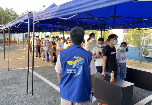 布置現(xiàn)場、發(fā)動群眾、分流引導(dǎo)、信息登記、拿表取樣……在核酸檢測現(xiàn)場,每一個環(huán)節(jié)都有網(wǎng)格員們的身影。由于天氣炎熱,前來進行采樣的人數(shù)眾多,時間緊任務(wù)重,這對于網(wǎng)格員們來說是個巨大的挑戰(zhàn)。