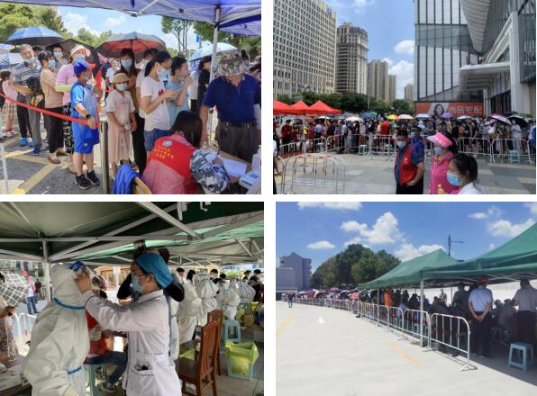 “只要還有一個居民在排隊,不管多晚決不撤離!”在檢測過程中,大家前赴后繼,每三個小時輪流上崗,分組引導群眾進行登記和引導核檢,引導大家分批次、分時段有序檢測。此外,由于高溫天氣,大家穿著厚重防護服,不一會就汗水濕透全身,但在“高強度作戰(zhàn)”下無一人退縮。累了,就在附近找一處陰涼地躺下歇上幾分鐘。社區(qū)還為醫(yī)護人員、居民、工作人員準備了人丹、風油精、防蚊花露水等“消暑用品”,讓群眾感受到暖暖的東山“志愿紅”。