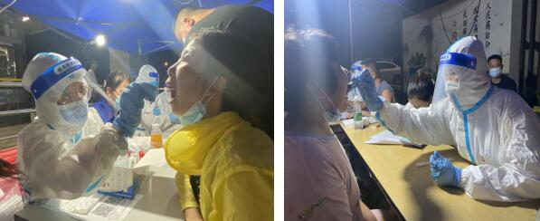 時值盛夏三伏天,人的體感溫度已經(jīng)達到40多度,滾滾熱浪給工作人員們帶來了極大的挑戰(zhàn),尤其是身穿防護服的醫(yī)護人員,很難想象他們是以什么狀態(tài)在進行著如此大體量的核算采集工作。