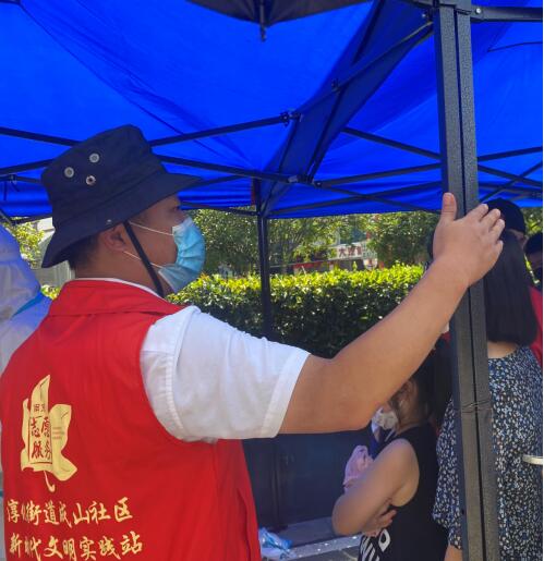 此外,社區(qū)的志愿者團隊也充分發(fā)揮了先鋒模范帶頭的作用,黨員志愿者、團員志愿者、新時代文明志愿者、巾幗志愿者等等,他們紛紛走上街頭,不畏酷暑,用自己的行動為此次全民核算檢測貢獻著自己的力量,維持現(xiàn)場的秩序、幫忙做好信息登記,穿梭在樓幢間積極宣傳著,碰到不理解的居民還會上前做安撫工作,在他們的幫助下,一切都在盡然有序的進行著。