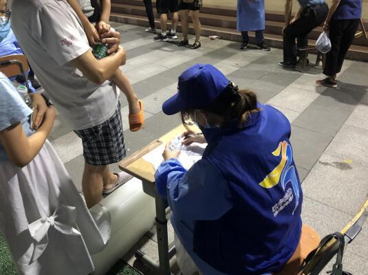 網(wǎng)格員們分工協(xié)助,配合默契,為了盡快額完成采樣工作,每一個司家社區(qū)網(wǎng)格員都沒有顧上吃午飯,悶熱的天氣,網(wǎng)格員穿著厚重的防護服,汗水早已浸透衣服,但他們依舊認真的對待居民、細致、耐心的進行登記和引導工作。一直持續(xù)到深夜1點采樣和現(xiàn)場清潔才結(jié)束。