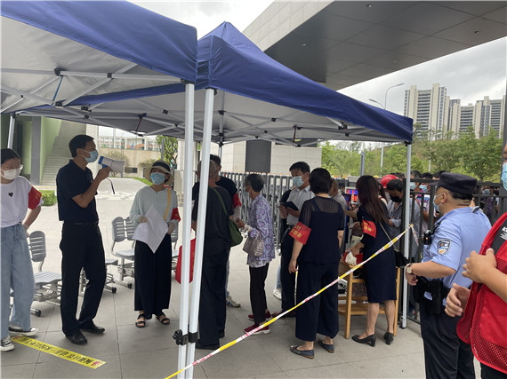 “請大家有序排隊,配合出示健康碼”,在華僑城小學核酸檢測點大門處,短短的幾句話陳剛同志重復了上百遍,忙碌了一個上午還在核查排隊檢測人員的健康碼。接上級通知,7月25日,南京市棲霞區(qū)棲霞街道攝山村全體工作人員聞令而動、沖鋒在前,用汗水踐行使命,助力開展第二次全員核酸檢測工作安全、平穩(wěn)推進。