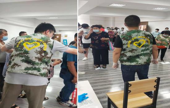 在核酸集中采樣點(diǎn),志愿服務(wù)隊(duì)隊(duì)員身穿退役軍人志愿者服務(wù)服裝,精神抖擻,在核酸采集工作組的統(tǒng)一安排下開展協(xié)助群眾登記資料、為老弱病殘群體提供幫助、協(xié)助現(xiàn)場防護(hù)和維護(hù)秩序等志愿活動(dòng)。在志愿者們的引導(dǎo)下,現(xiàn)場秩序井然有條,檢測工作快速高效。“您好,請(qǐng)問登記信息了嗎?”退役軍人志愿者們向群眾提供熱情耐心志愿服務(wù)。每當(dāng)有群眾前來檢測時(shí),志愿者們都會(huì)主動(dòng)上前詢問群眾的信息登記情況,為檢測群眾提供貼心服務(wù)。