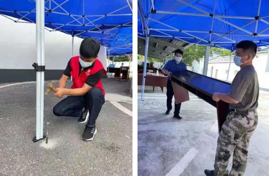 搭帳篷、設(shè)置一米線、老幼病殘?jiān)械却齾^(qū)和綠色通道。。。。。。志愿者們?cè)诂F(xiàn)場(chǎng)忙碌地?zé)峄鸪臁N∫惠喓怂釞z測(cè)的經(jīng)驗(yàn),紅旗村黨總支書記詹強(qiáng)酉帶領(lǐng)工作人員利用會(huì)議桌椅搭建回字形檢測(cè)通道。同時(shí),根據(jù)轄區(qū)情況,做好應(yīng)急工作方案,規(guī)劃全員核酸檢測(cè)導(dǎo)視圖,部署安排人員分工,分清區(qū)域責(zé)任到人。加強(qiáng)宣傳,營(yíng)造濃厚的防疫宣傳氛圍。考慮好全民核酸檢測(cè)的每一個(gè)細(xì)節(jié),要求全體人員掌握防疫常識(shí),加強(qiáng)巡查,對(duì)轄區(qū)人員底數(shù)清、數(shù)據(jù)準(zhǔn)。
