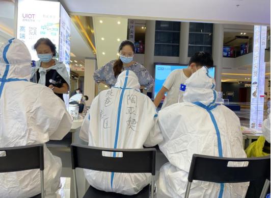 在核酸檢測現(xiàn)場,陶亞婕為前來采樣的居民們登記信息、核對身份、引導(dǎo)居民有序排隊,從第一次核酸檢測以來,每次都是從早上7點一直工作到深夜。由于穿著厚厚的防護服,一整天的工作下來,衣服都已經(jīng)被汗浸濕,她的無私奉獻精神就連其他社區(qū)工作人員也感到深深敬佩。“一想到自己是在做有意義的事,再苦再累也不怕了。”陶亞婕表示,這次能夠參與到核酸檢測工作中來,是自己一生中都將引以為傲的一件事。