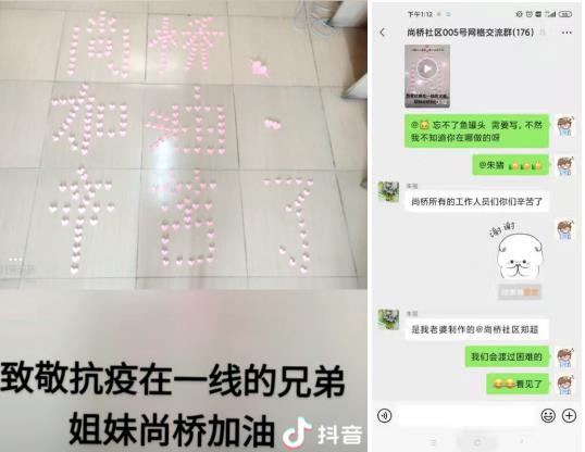 面對新型冠狀病毒的肺炎疫情,社區(qū)充分發(fā)揮引領(lǐng)作用,通過微信群等方式廣泛發(fā)動志愿者帶頭,團結(jié)群眾,積極參與疫情防控工作。在社區(qū)的牽頭下,“小組制”得到了落地。隔離人員的物資需求統(tǒng)一匯報給小組長,再由小組長轉(zhuǎn)發(fā)給社區(qū)工作人員統(tǒng)一代購,幾天下來,他們逐漸熟悉隔離生活、逐漸認可社區(qū)人員。居民為感謝社區(qū)志愿者,還自制了一段視頻,將他們認真負責和悉心服務(wù)的全過程記錄了下了。志愿者與居民相互守望幫扶,成為基層防控服務(wù)的一道“暖心”風景線。