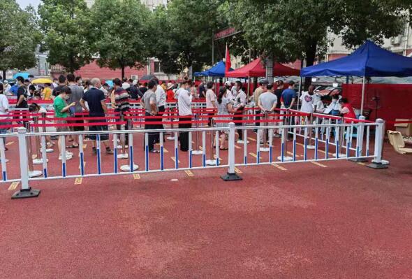 值得一提的是,經(jīng)過前三輪全員核酸檢測的實操演練,第四輪全員核酸檢測部署工作愈發(fā)完善。走進(jìn)社區(qū)設(shè)置的核酸檢測點位,紅藍(lán)相間的遮陽棚已經(jīng)搭建完成,地面每隔一米放置一個標(biāo)識,居民群眾在欄桿的圍擋和紅繩的牽引下,按照一米的標(biāo)識有序排起長隊,等待醫(yī)護(hù)人員進(jìn)行核酸檢測,整個檢測有條不紊、高效高速進(jìn)行著。“社區(qū)這樣的安排太貼心了,減少了我們因為排隊檢測,人員聚集造成交叉性感染的擔(dān)憂。”一位居民表示。