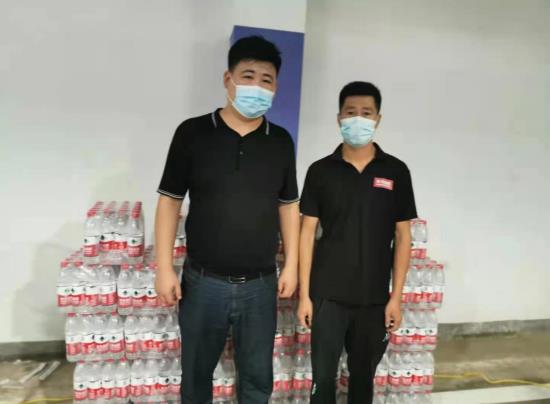 在鳳凰村全員核酸檢測采樣點(diǎn),醫(yī)護(hù)人員、志愿者、網(wǎng)格員、社區(qū)工作者等工作人員不懼酷暑,在高溫下作戰(zhàn),在崗位上堅(jiān)守直至夜晚,大家身著防護(hù)服,細(xì)心地對每個(gè)群眾進(jìn)行核酸檢測,鳳凰村轄區(qū)愛心企業(yè)南京鴻其豪食品商貿(mào)公司負(fù)責(zé)人李飛主動(dòng)為我社區(qū)區(qū)3個(gè)點(diǎn)位捐贈(zèng)100箱礦泉水為一線工作人員解暑。