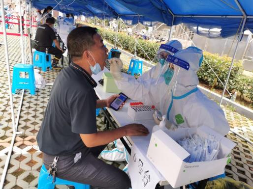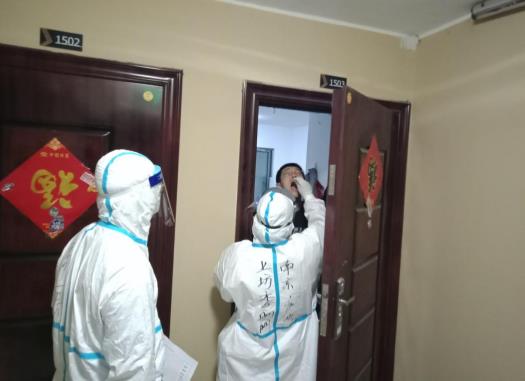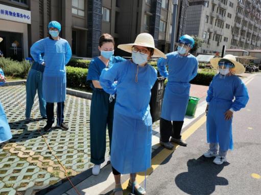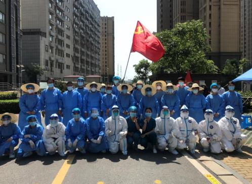 核酸檢測(cè)現(xiàn)場(chǎng)的工作人員合影