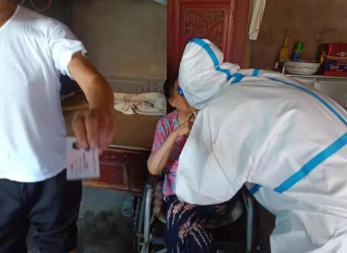 為了幫助村里行動(dòng)不便的殘疾人士做好核酸檢測采樣工作,對口支援徐慕村的徐州醫(yī)療支援隊(duì)主動(dòng)提出上門為殘疾人士做核酸檢測,在徐慕村工作人員的協(xié)調(diào)下,徐州醫(yī)療支援隊(duì)動(dòng)身前往村民家中。