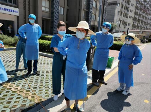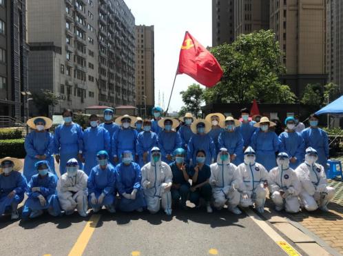 核酸檢測(cè)現(xiàn)場(chǎng)的工作人員合影