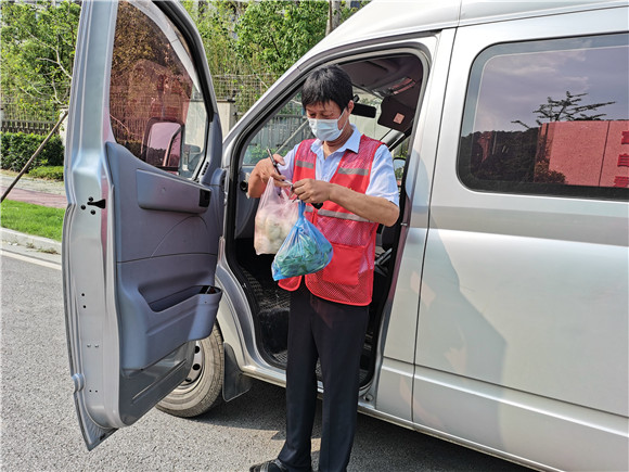 蔬菜、生活用品、快遞是居家隔離人員需求最多的幾項(xiàng)服務(wù),雖然不能邁出家門,但他們通過(guò)一條微信、一個(gè)電話就可以直接“下單”,志愿者就會(huì)把他們需要的東西送到家門口。為服務(wù)好居家隔離人員的生活,攝山村委會(huì)安排專人通過(guò)“掌上云社區(qū)”微信群溝通和電話聯(lián)絡(luò),及時(shí)掌握隔離人員的身體、生活狀況,了解各類需求。根據(jù)隔離人員的需求,村委會(huì)干部安排專車和志愿者,每天幫忙采購(gòu)蔬菜、水果、雞蛋等生活必需品,到取貨點(diǎn)代取快遞,做好防護(hù)的基礎(chǔ)上,將物資配送到居民門口,確保隔離人員足不出戶、安心隔離。