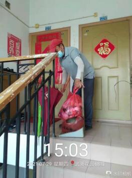 為居家隔離人員送去當?shù)爻?、菜場購買的蔬菜、物資,以開車、步行的方式送到居民手中。細致的服務(wù),讓居民們對她贊不絕口。