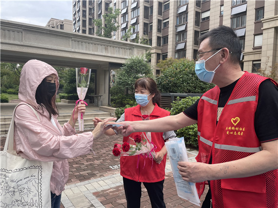 “我和老伴兒結(jié)婚已經(jīng)有43年了,每天都互相陪伴著。我聽說現(xiàn)在年輕人喜歡儀式感,特地買來了玫瑰花送給她。但是我們更想把這份“愛的小心意”傳遞下去,希望疫情趕緊過去,大家能一起甜蜜、健康。”說話的是施大爺。